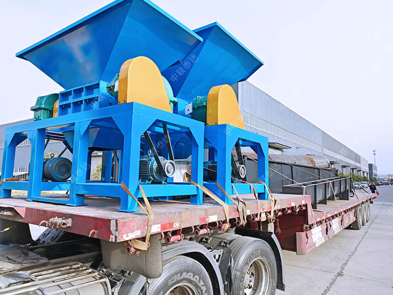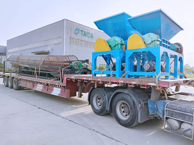 600型撕碎機,配套10米長交易滾筒篩發(fā)貨