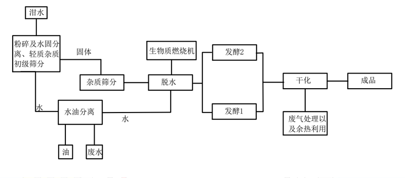 該系統(tǒng)采用先將物料粉碎,便于后續(xù)的脫水,脫水后對(duì)脫水物料進(jìn)行干燥,減少了干燥能耗,并且在高溫干燥的過(guò)程中滅活物料中的有害微生物,不需要單獨(dú)設(shè)立滅菌工藝,簡(jiǎn)化了物料處理的過(guò)程,節(jié)省了單獨(dú)滅菌所需的能量。根據(jù)工藝需求,可提供發(fā)酵肥料化和發(fā)酵飼料化兩種工藝路線。以飼料化路線為例,干燥滅菌后將物料制成顆粒飼料,方便了飼料產(chǎn)品的包裝、儲(chǔ)運(yùn)和使用,并可以在處理過(guò)程中根據(jù)物料性質(zhì)和飼料所需的營(yíng)養(yǎng)要求,適當(dāng)添加飼料添加劑,調(diào)節(jié)出符合營(yíng)養(yǎng)要求飼料,有助于科學(xué)喂養(yǎng)牲畜。 該餐飲垃圾烘干機(jī)成套設(shè)備使全部處理過(guò)程連續(xù)封閉地進(jìn)行,不僅減少了占地面積,更可以減少建設(shè)投資,操作方便,消除生產(chǎn)過(guò)程可能產(chǎn)生的異味和環(huán)境污染,減少物料和能源浪費(fèi)。