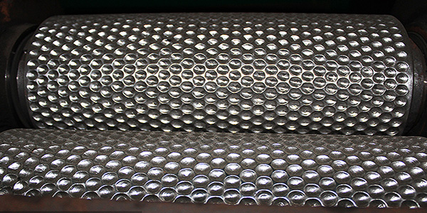 各種干粉物料從設(shè)備頂部加入,經(jīng)脫氣、螺旋頂壓進(jìn)入對(duì)輥,在對(duì)輥極大的擠壓力作用下使物料產(chǎn)生塑性變形而被壓縮成片狀。片狀物料在經(jīng)過破碎、整粒、篩分等過程,得到顆粒狀產(chǎn)品。通過改變輥面開槽形式,可得到片狀、條狀、扁球狀物料。擠壓力的大小可根據(jù)造粒操作的需要由液壓油缸的壓力進(jìn)行調(diào)節(jié)。