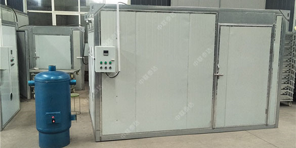 泰達(dá)節(jié)能烘干房主要包括烘箱、推測、烘干托盤組成,烘箱側(cè)部設(shè)有電加熱器,烘箱頂部設(shè)有通風(fēng)口,烘箱的一端設(shè)有進(jìn)出料通道,烘干房主體集成了控制箱,結(jié)構(gòu)簡單,通過溫度傳感的設(shè)置,使烘箱內(nèi)溫控更加簡單靈活,提升烘干機(jī)的烘干質(zhì)量效果和使用經(jīng)濟(jì)效益。