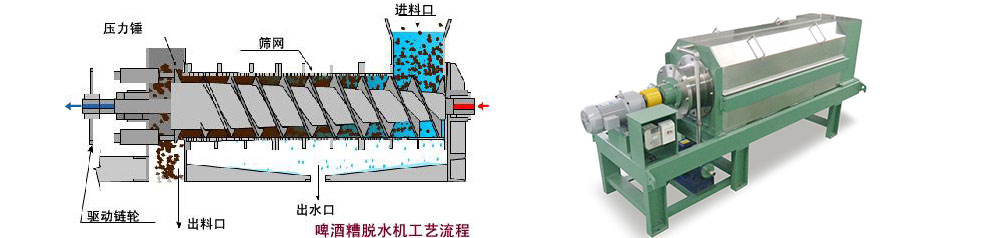 啤酒糟脫水機是鄭州泰達設(shè)備有限公司針對啤酒糟液分離開發(fā)的專用脫水設(shè)備。啤酒糟脫水機可將含水量85%左右的啤酒糟液擠壓處理到55~60%左右的含水率。啤酒糟脫水機采用螺旋擠壓脫水機對物料進行脫水,螺旋擠壓脫水機可廣泛應(yīng)用于高濕糟渣物料干燥前的脫水作業(yè),如酒糟、果渣、啤酒糟、木薯渣等的脫水,大大減輕干燥機的負擔(dān),產(chǎn)量大幅度提高,能耗大幅度降低,是高濕物料干燥前必不可少的處理設(shè)備,經(jīng)過脫水后的物料可以直接進入干燥設(shè)備,大幅度降低了干燥能耗。